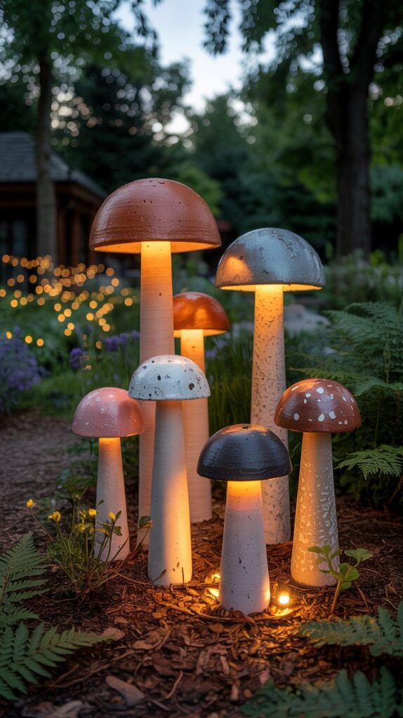 Create magical, glowing mushrooms that transform your garden into an enchanted wonderland at night. These whimsical sculptures add charm during the day and a magical glow after dark.