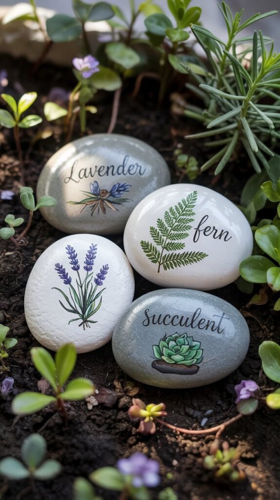 Create charming, weatherproof garden markers by painting rocks with the names of your plants. This simple project adds color and organization to your garden beds while helping you remember what you’ve planted where.