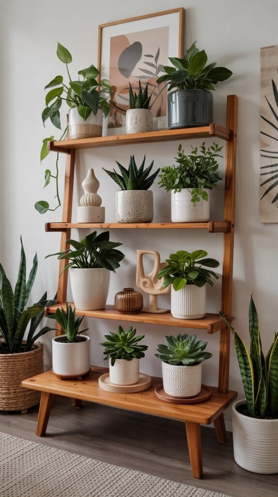 3. Rustic Ladder Plant Shelf