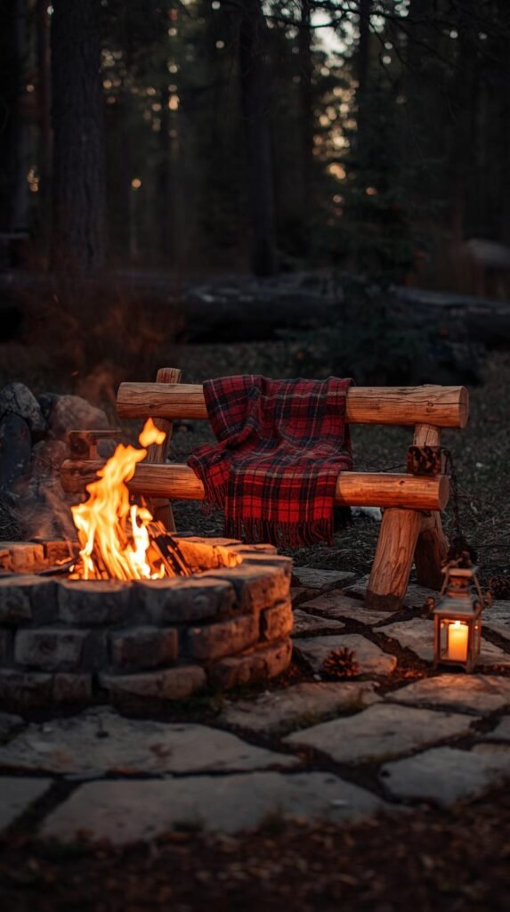 There’s nothing that says “rustic charm” quite like a log bench circling a glowing fire pit. The natural texture of the wood, the earthy scent, and the simplicity of the design create an authentic campfire feel, perfect for cozy nights or backyard gatherings.