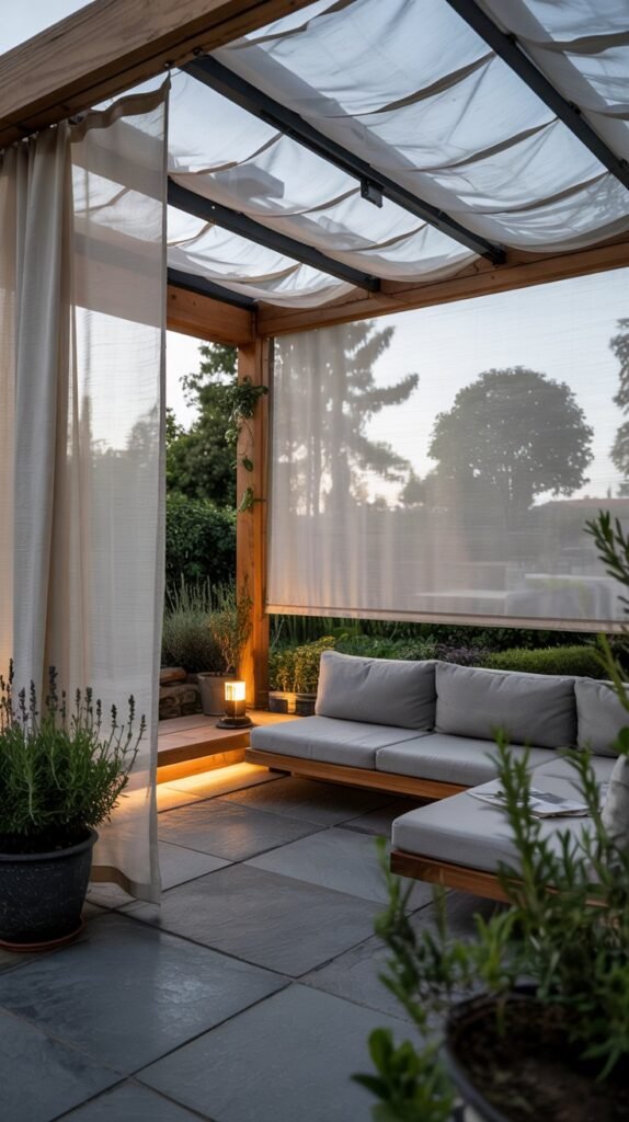Sheer, weatherproof mesh curtains create the perfect balance of protection and beauty. When hung from pergolas, gazebos, or even tree branches, they catch the breeze and create a sense of intimate enclosure while keeping insects out. Choose materials specifically designed for outdoor use with UV protection and water resistance.