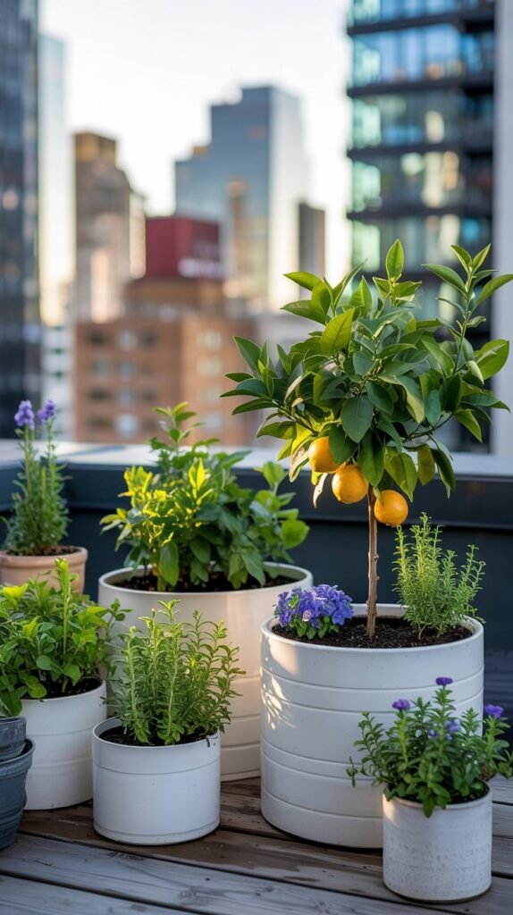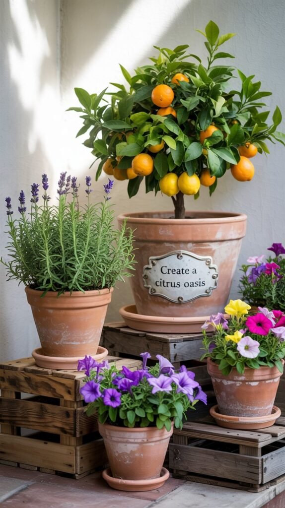 - Add smaller herb pots between larger citrus containers