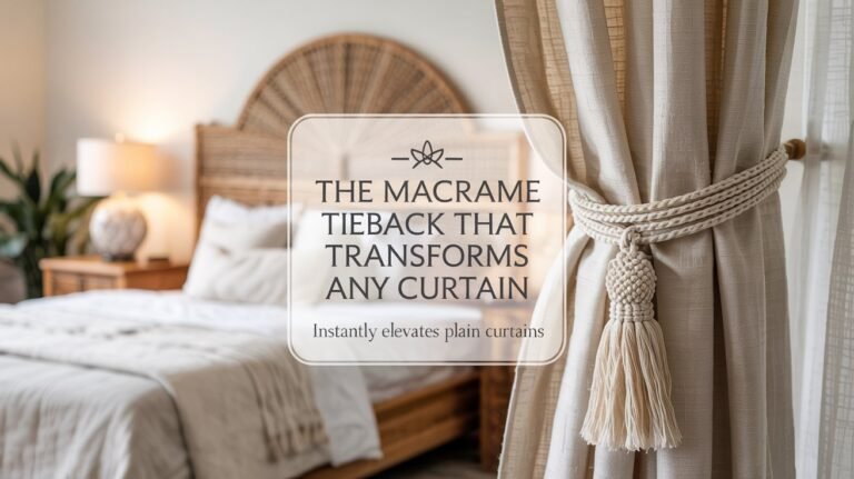Easy DIY macrame curtain tie backs, beginner wrapped-tassel & ring-loop designs, materials, cutting guide and finishing tips to make a pair.