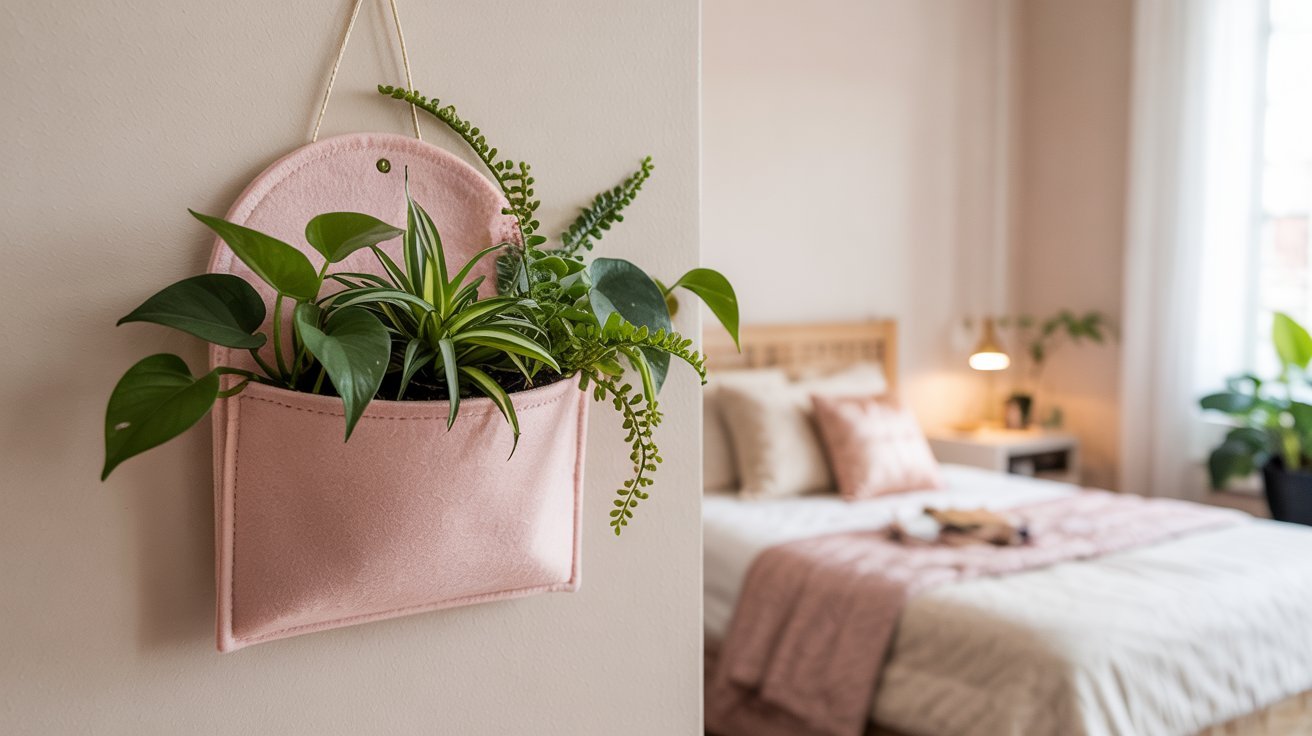 Fabric pocket planters are perhaps the most versatile vertical gardening solution for small bedrooms. These lightweight, flexible pouches attach easily to walls and can be arranged in countless patterns. Their soft texture adds warmth to bedroom spaces while their modular nature allows you to start small and expand your garden over time.